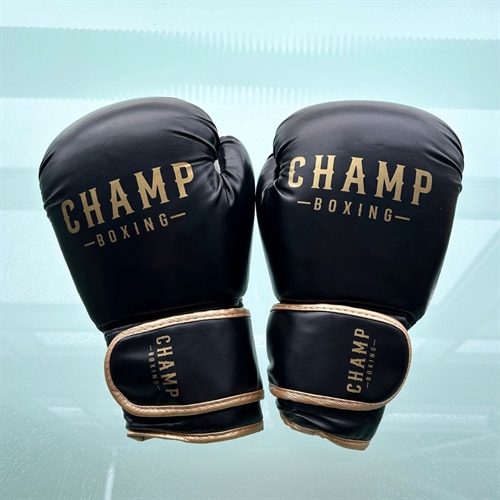 Champ Boksesæt 18 kg - Sort/Guld, et komplet sæt designet til træning, leg og teknikopbygning derhjemme. Den ekstra vægt giver en mere realistisk modstand – uden at gå på kompromis med sikkerheden.