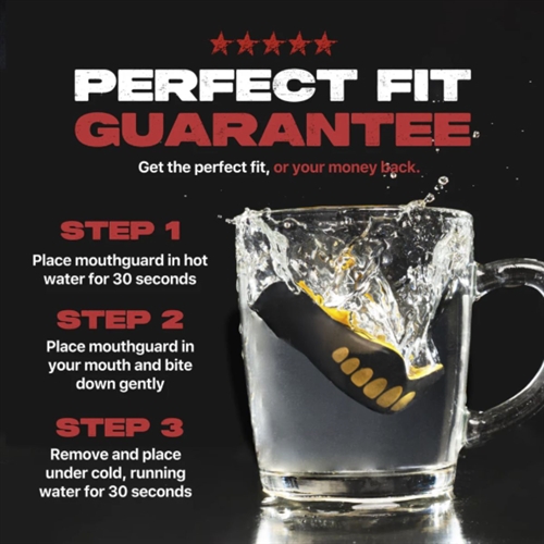 Den komfortable pasform tilpasser sig nemt til munden med kog-og-bid-teknologi og giver dig frihed til at trække vejret, tale og præstere uden gener. Medfølgende opbevaringsboks gør det nemt at holde tandbeskytteren ren og klar til brug.
